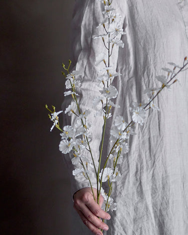 Our stunning Orchid stem is a delicate and sophisticated addition to any vase or bouquet. The white flowers blooming along the stem provide a sense of purity and tranquility, and it requires no maintenance. Shape the stem before use to bring out the natural look of the plant and adapt it to your personal decor.