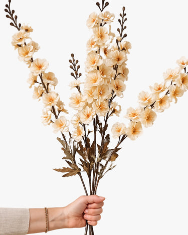 The Larkspur Artificial Stem captures the light and airy feel of spring. The stem can be used alone as a natural artwork or mixed into bouquets to add height and structure. It is an ideal way to bring a sense of everlasting spring into any home. Shape the stem before use to bring out the natural look of the plant and adapt it to your personal decor.