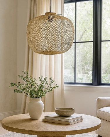 Elevate your interior with the natural elegance of our Bamboo Lamp Pendant. Crafted from beautifully woven bamboo wicker, this stunning pendant lamp casts a warm, inviting glow—perfect for adding texture and ambiance to any room.