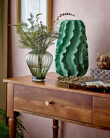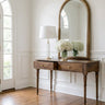 The Mango Wood Console Table from our furniture collection is crafted from FSC-certified mango wood and features a versatile design that suits any room in the home. Ideal for the office, it can also be used as a makeup table or as a decorative piece with a mirror and other ornaments. The two spacious drawers are perfect for storing makeup, office supplies, or other small items that need to be within easy reach. L127xH77xW50 cm