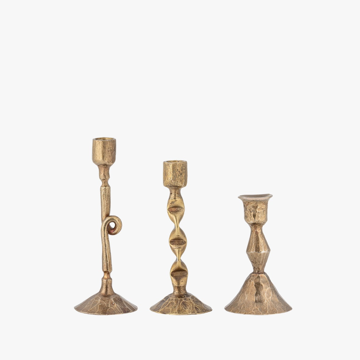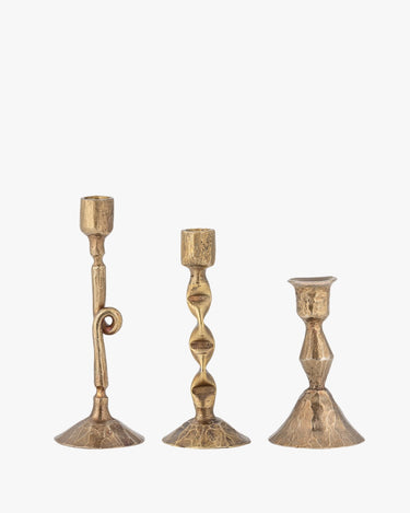 Bring a touch of quiet elegance to your home with our Eden Candle Holders — a set of three crafted in brass-colored metal, each with its own distinctive charm. Their subtly patinated finish adds depth and warmth, creating that effortless “lived-in” beauty we all love.