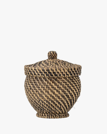 LAUREL BASKET WITH LID, WOVEN RATTAN