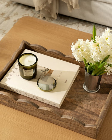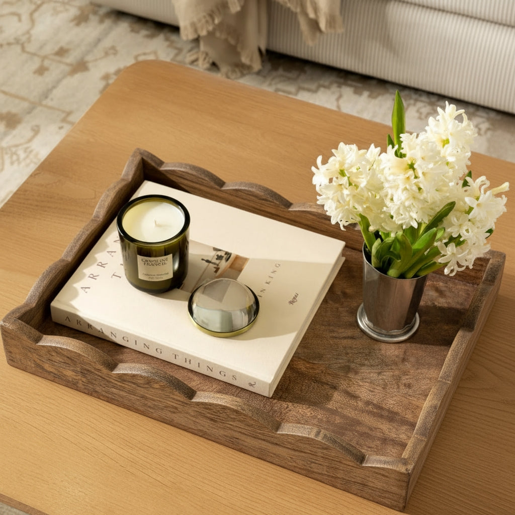 Crafted from beautiful mango wood, the Namira Tray brings a natural charm to any space. Its gently wavy edges add a playful, eye-catching detail that makes even the simplest setting feel special. Both decorative and practical, it’s the perfect piece for serving guests, displaying candles or flowers, or keeping small items neatly gathered together.
